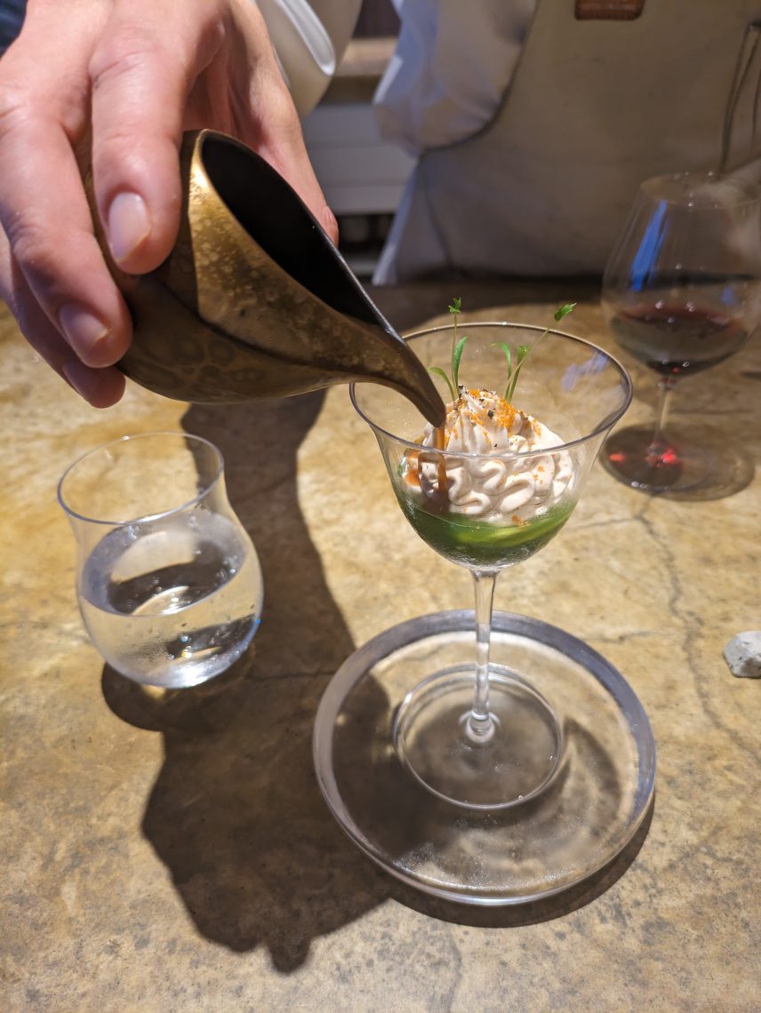 신 우엉 무스는 바삭한 치즈 칩과 부드럽고 크리미한 우 무스의 조합이 절묘하며, 풍부한 식감을 즐길 수 있었습니다.