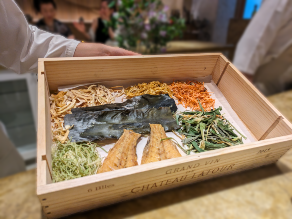 다음 요리가 나오기 전에, 다카야마 셰프가 신선한 식재료를 직접 소개해 주셨습니다. 식재료의 신선함이 눈으로도 확인되어 더욱 식욕을 자극했습니다.