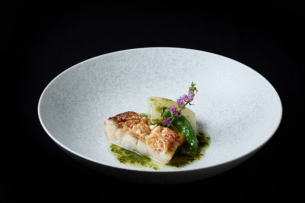 먼저 주방장 무라시마 테루키 씨는 긴자의 명점을 거쳐 프랑스 현지뿐만 아니라 타이베이 ‘L’Atelier Joël Robuchon TAIPEI(미쉐린 2스타)’에서는 부주방장, 긴자의 ‘ESqUISSE(미쉐린 2스타)’에서는 주방장을 역임했습니다. 2024년 「Hèritage by Kei Kobayashi」의 주방장으로 취임해 개업 첫 해에 미쉐린 가이드 도쿄 2025에서 1스타를 획득했습니다. 고바야시 씨는 “전통적인 프랑스 요리를 숙지하고 탄탄한 기반을 갖추었으며 미래를 향한 재해석이 가능한 셰프”라며 무라시마 씨에게 전체적인 신뢰를 가지고 있습니다.