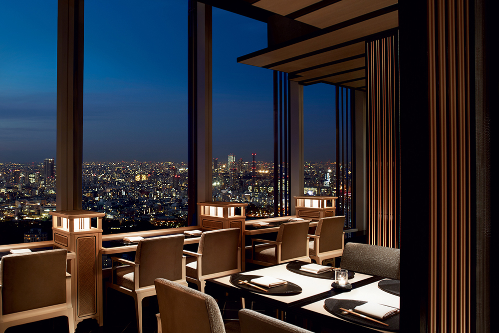 5성급 호텔 ‘더 리츠칼튼 도쿄’ 45층에 자리한 일본 요리점 ‘히노키자카’.