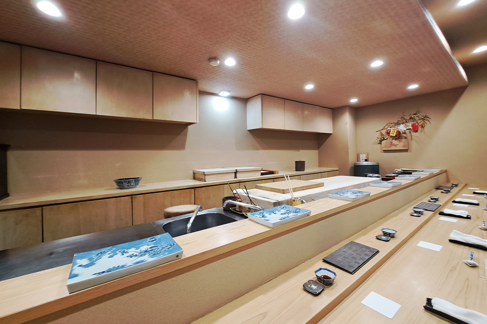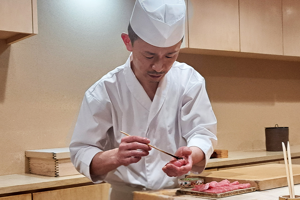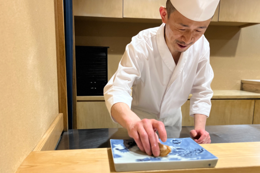 Chef Taira, the owner, is a dedicated and curious craftsman who has personally dined at numerous sushi restaurants to deepen his knowledge. Both as a sushi maker and as a diner, his skill and sensibility place him among the most highly regarded in the field. His training includes working at Shokudo Ogawa, the independent restaurant of a disciple from the Michelin three-star Gion Sasaki, and at Sushi Shin in Osaka’s Tenjinbashi area, where he developed his unique culinary perspective and approach to hospitality.