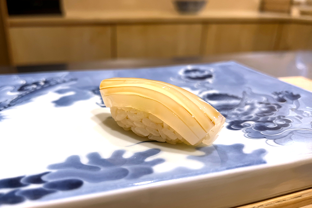 Thoughtful and soft-spoken, Chef Taira is open to introducing slight variations to his sushi neta, considering what ingredients might delight international guests. His flavoring is balanced, with no sharp edges in acidity, saltiness, or sweetness, leaving a clean finish. With a wide repertoire of fish varieties and preparation methods, his sushi remains firmly rooted in the fundamentals and traditions of Edomae style.