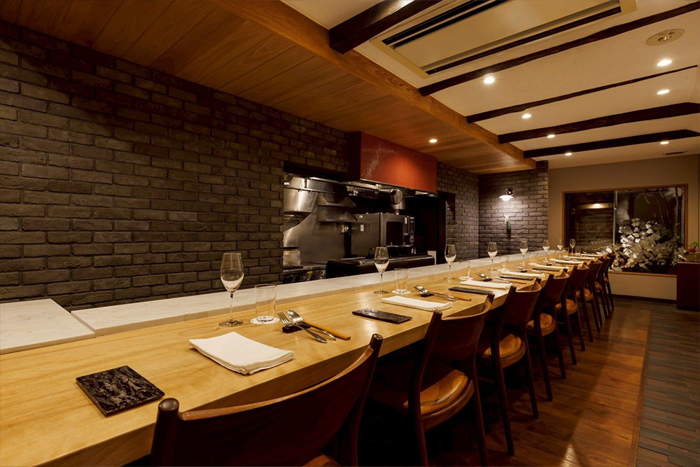 店內設計以溫潤木質的八席吧檯與樑柱展現和風之美,並巧妙融入磚牆等西洋元素,營造出日洋融合的獨特氛圍。